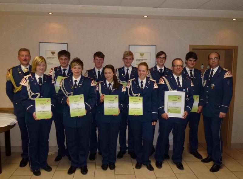 Am 12.11.2011 konnten wir einige Mitglieder für langjährige Mitgliedschaft auszeichnen. Unser Bild zeigt von links nach rechts: Klaus Horstkemper, Tambourmajor, Sarah Pagenkemper (10 Jah.), Matthias Wunderatsch (10 Jah.), Lisa Kleinesudeik (10 Jah.), Lukas Kamin (10 Jah.), Hannah Kaiser (10 Jah.), Kai Johannkemper (10 Jah.), Franziska Kaiser (10 Jah.), Christoph Strugholtz (10 Jah.), Markus Hollenbeck (30 Jah.), Max Menze (10 Jah.) und Klaus Schlütermann, 1. Vorsitzender.